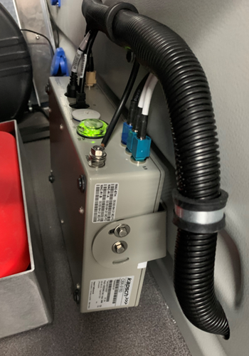 The core function of the C-ITS onboard unit is sending out different C-ITS messages (DENMs - Decentralized Environmental Notification Messages) when required, which are either triggered automatically when the blue or yellow light is activated or activated manually via a tablet handheld, such as warnings for approaching emergency vehicles, stationary vehicles in protection, accidents, breakdowns, road works, etc.